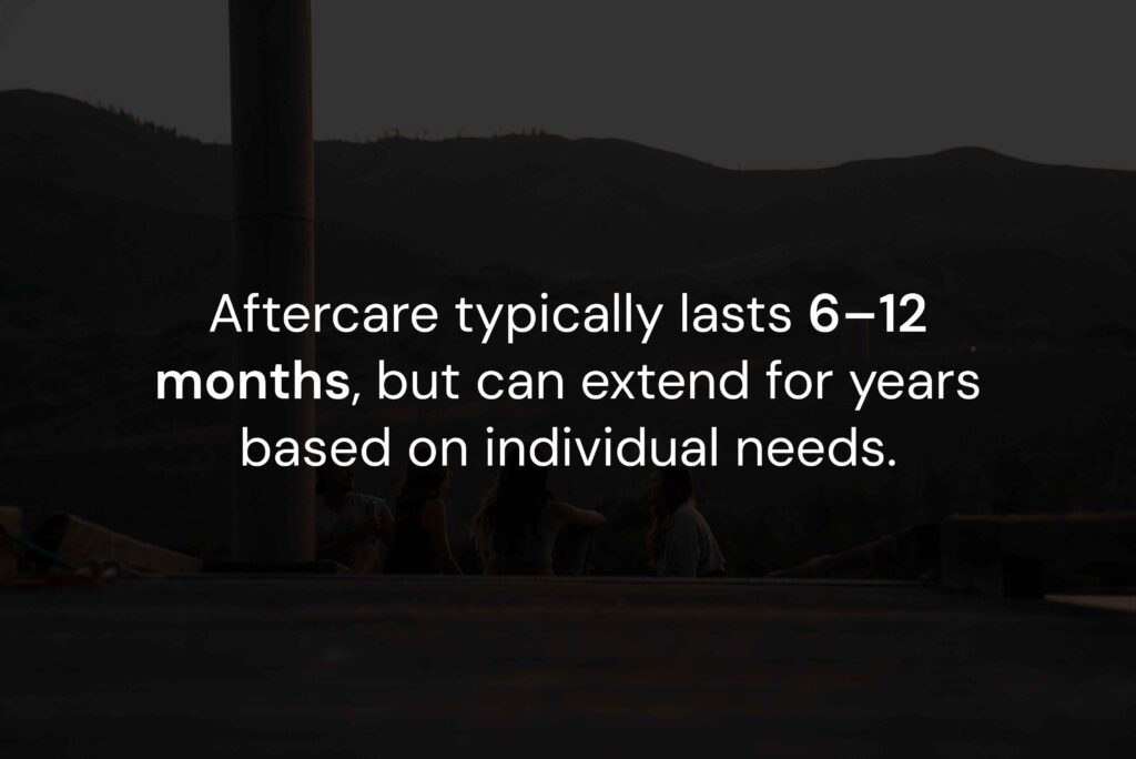 Aftercare typically lasts from six months to a year, but many people benefit from longer engagement. The exact timeline depends on factors such as addiction severity, mental health, relapse history, and available support. Extended aftercare significantly improves outcomes by reinforcing accountability, therapy, and coping skills. Recovery does not end after rehab—it continues through aftercare and beyond.