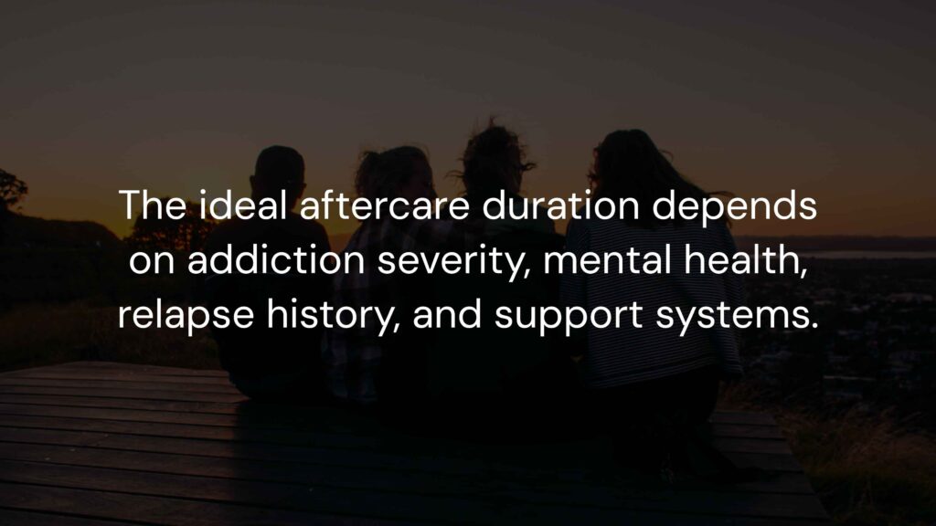 - Relapse history: Those who have relapsed before usually benefit from longer aftercare engagement.