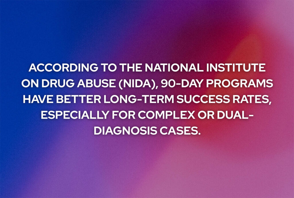 According to the National Institute on Drug Abuse (NIDA), 90-day programs have better long-term success rates, especially for complex or dual-diagnosis cases.
